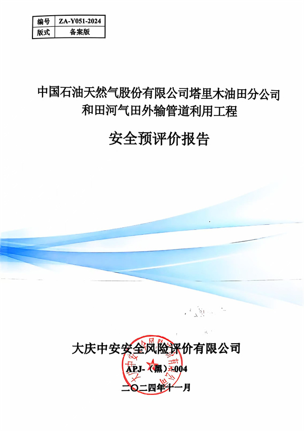 中國石油天然氣股份有限公司塔里木油田分公司和田河氣田外輸管道利用工程安全預評價報告 |