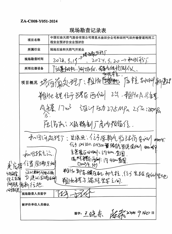 中國石油天然氣股份有限公司塔里木油田分公司和田河氣田外輸管道利用工程安全預評價報告