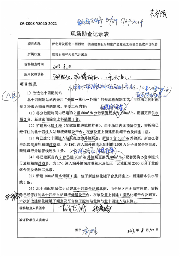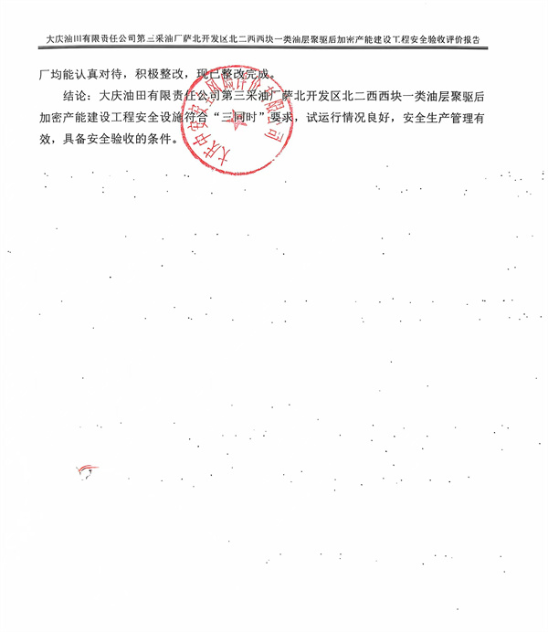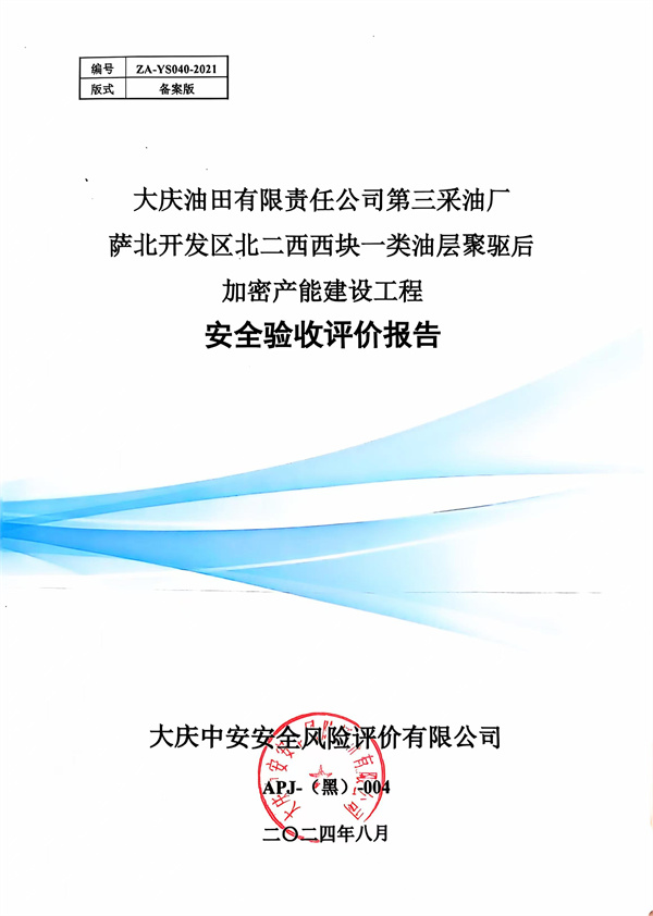 大慶油田有限責任公司第三采油廠薩北開發區北二西西塊一類油層聚驅后加密產能建設工程安全驗收評價報告 |