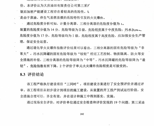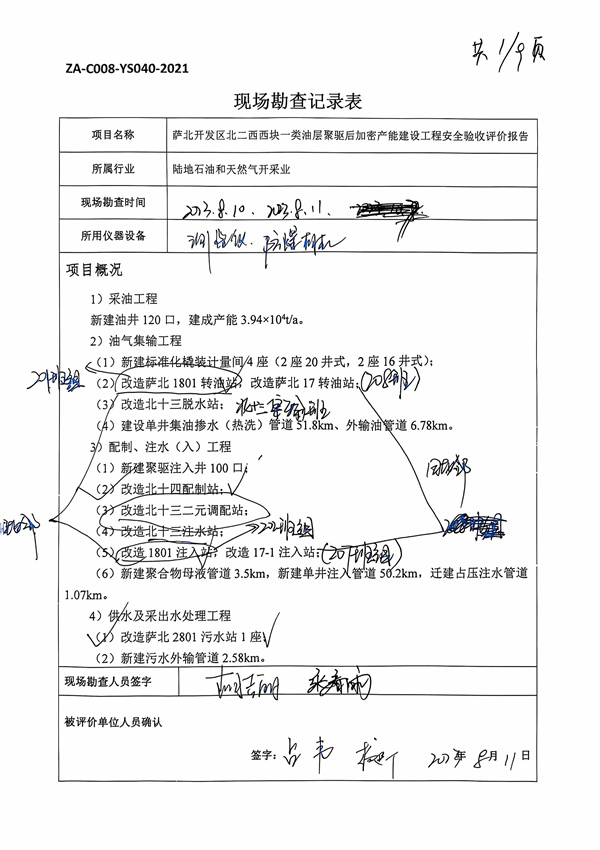 該工程嚴格執行建設項目“三同時”,項目建設方案進行了安全預評價并通過評審。該工程項目從初步設計到項目的施工建設,從裝置的開工投產到試運行階段,安全措施合理可行,齊全有效,并在設計和施工中得到落實、實施。 通過現場安全評價,對評價單位通過安全檢查和評價發現的19個問題,第三采油廠均能認真對待,積極整改,現已整改完成。 結論:大慶油田有限責任公司第三采油廠薩北開發區北二西西塊一類油層聚驅后加密產能建設工程安全設施符合“三同時”要求,試運行情況良好,安全生產管理有效,具備安全驗收的條件。 |