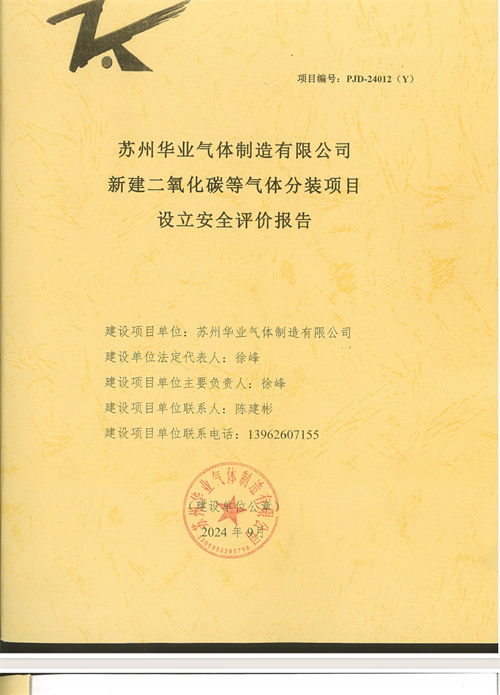 蘇州華業氣體制造有限公司新建二氧化碳等氣體分裝項目設立安全評價報告 |