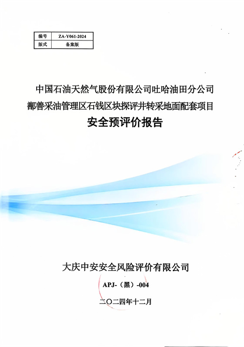 中國石油天然氣股份有限公司吐哈油田分公司鄯善采油管理區石錢區塊探評井轉采地面配套項目安全預評價報告