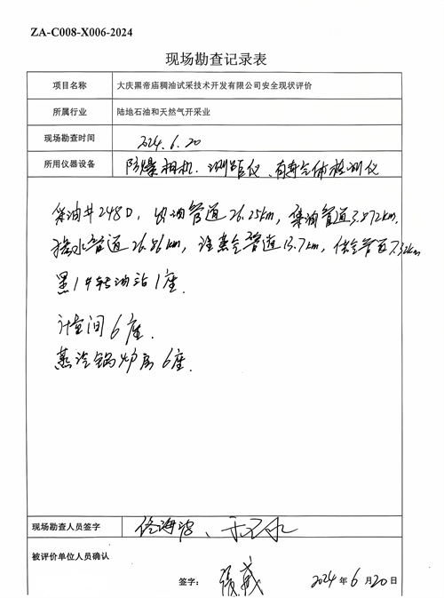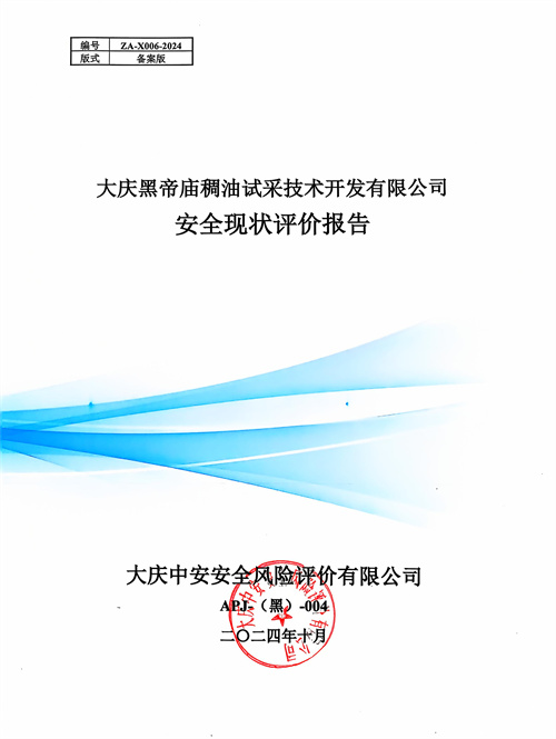 大慶黑帝廟稠油試采技術開發有限公司安全現狀評價報告