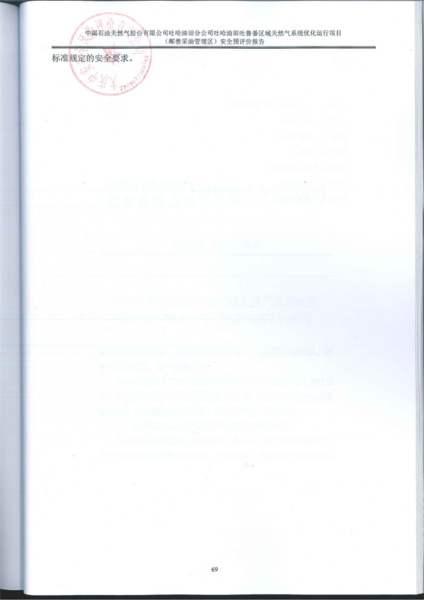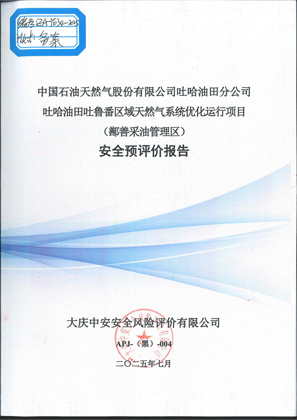 中國石油天然氣股份有限公司吐哈油田分公司吐哈油田吐魯番區域天然氣系統優化運行項目(鄯善采油管理區)安全預評價 |