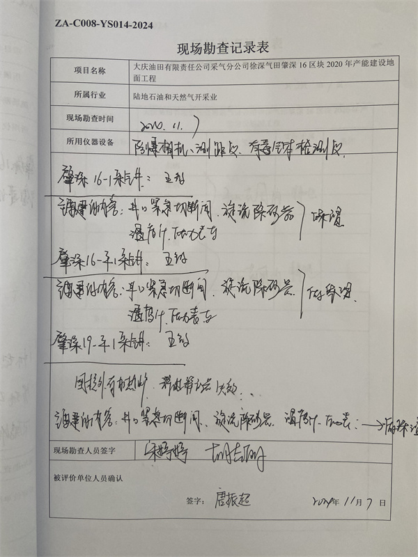 大慶油田有限責任公司采氣分公司徐深氣田肇深16區塊2020年產能建設地面工程安全驗收 |