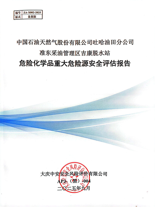 中國石油天然氣股份有限公司吐哈油田分公司準東采油管理區吉康脫水站危險化學品重大危險源安全評估報告