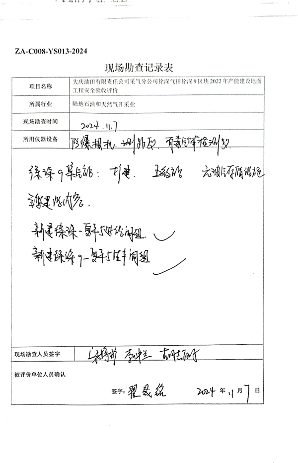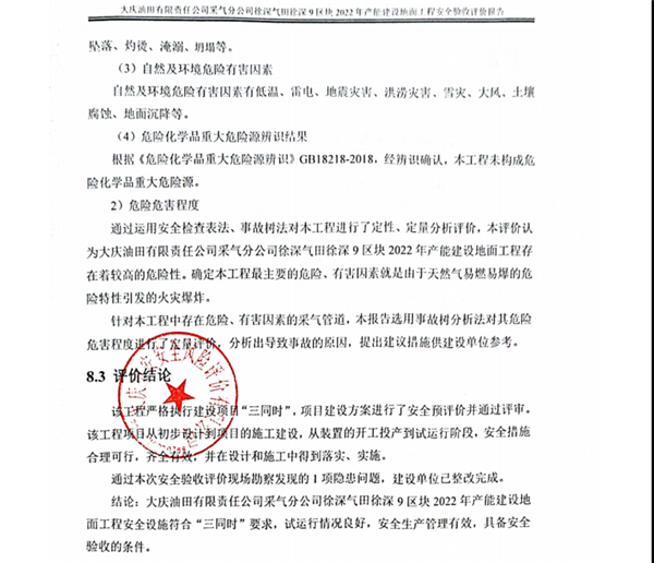 大慶油田有限責任公司采氣分公司徐深氣田徐深9區塊2022年產能建設地面工程安全驗收評價報告 |