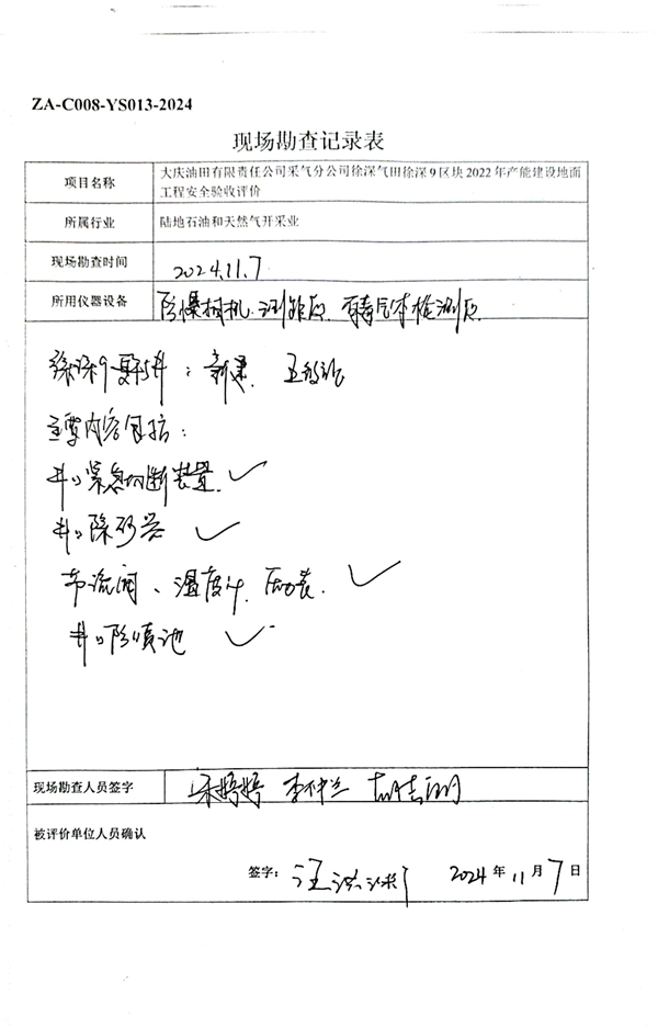 大慶油田有限責任公司采氣分公司徐深氣田徐深9區塊2022年產能建設地面工程安全設施符合“三同時”要求,試運行情況良好,安全生產管理有效,具備安全驗收的條件。 |