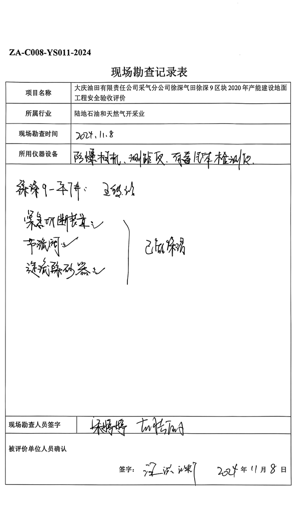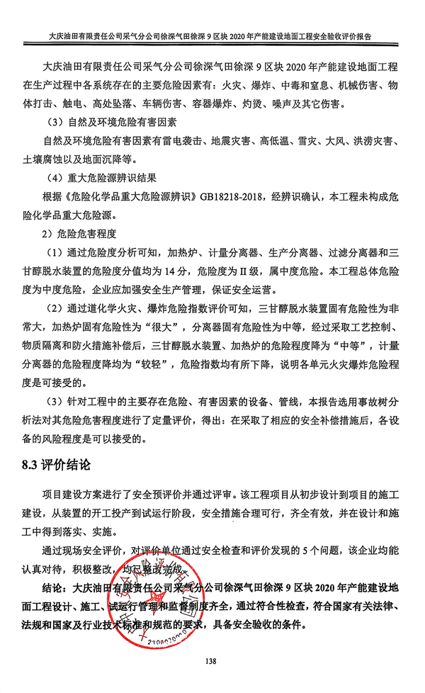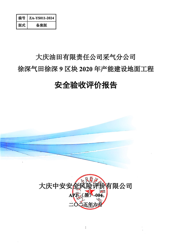 大慶油田有限責(zé)任公司采氣分公司徐深氣田徐深9區(qū)塊2020年產(chǎn)能建設(shè)地面工程安全驗(yàn)收評(píng)價(jià)報(bào)告