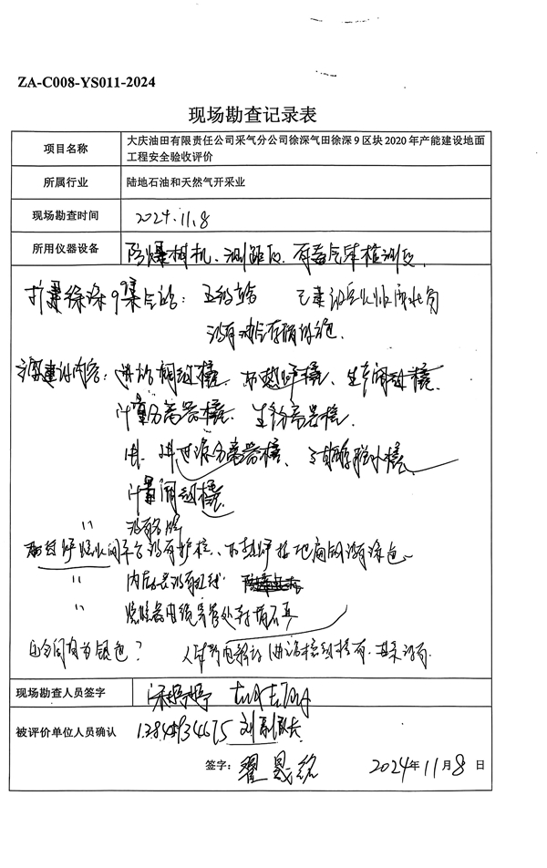 對(duì)新建井場(chǎng)及擴(kuò)建站場(chǎng)周邊環(huán)境、平面布置情況、現(xiàn)場(chǎng)安全設(shè)備設(shè)施進(jìn)行檢查。 |