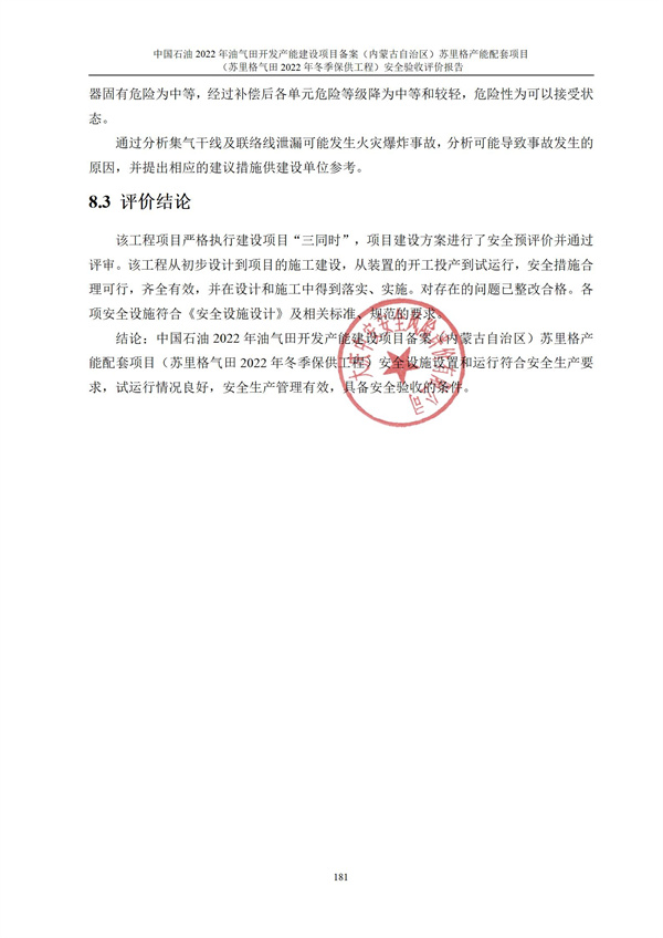 中國石油2022年油氣田開發產能建設項目備案(內蒙古自治區)蘇里格產能配套項目(蘇里格氣田2022年冬季保供工程)安全驗收評價 |