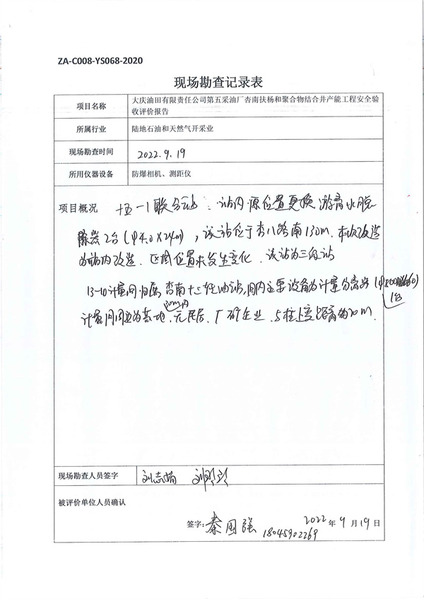 大慶油田有限責任公司第五采油廠杏南扶楊和聚合物結合井產能工程安全驗收評價報告 |